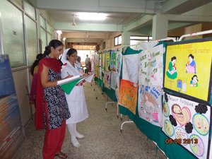 On 7th Aug, 2013 - The INE 3rd year students conducted a Role play in the post- natal wards. A Quiz competition and interactive session was also organized for the mothers and their relatives to dispel the myths regarding breast feeding. All these activities were appreciated and applauded by the patients and their relatives.