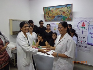 The skit was followed by a poster presentation by Final Year students Ankita Mashelkar, Priyanka Mashelkar, Krupeksha Naik & Shradha Manjrekar in ward 133, GMC. Staff nurses led by Ms Mumtaz Ismail from 135 ward, GMC explained the importance and the right way of preparing ORS to admitted patients.